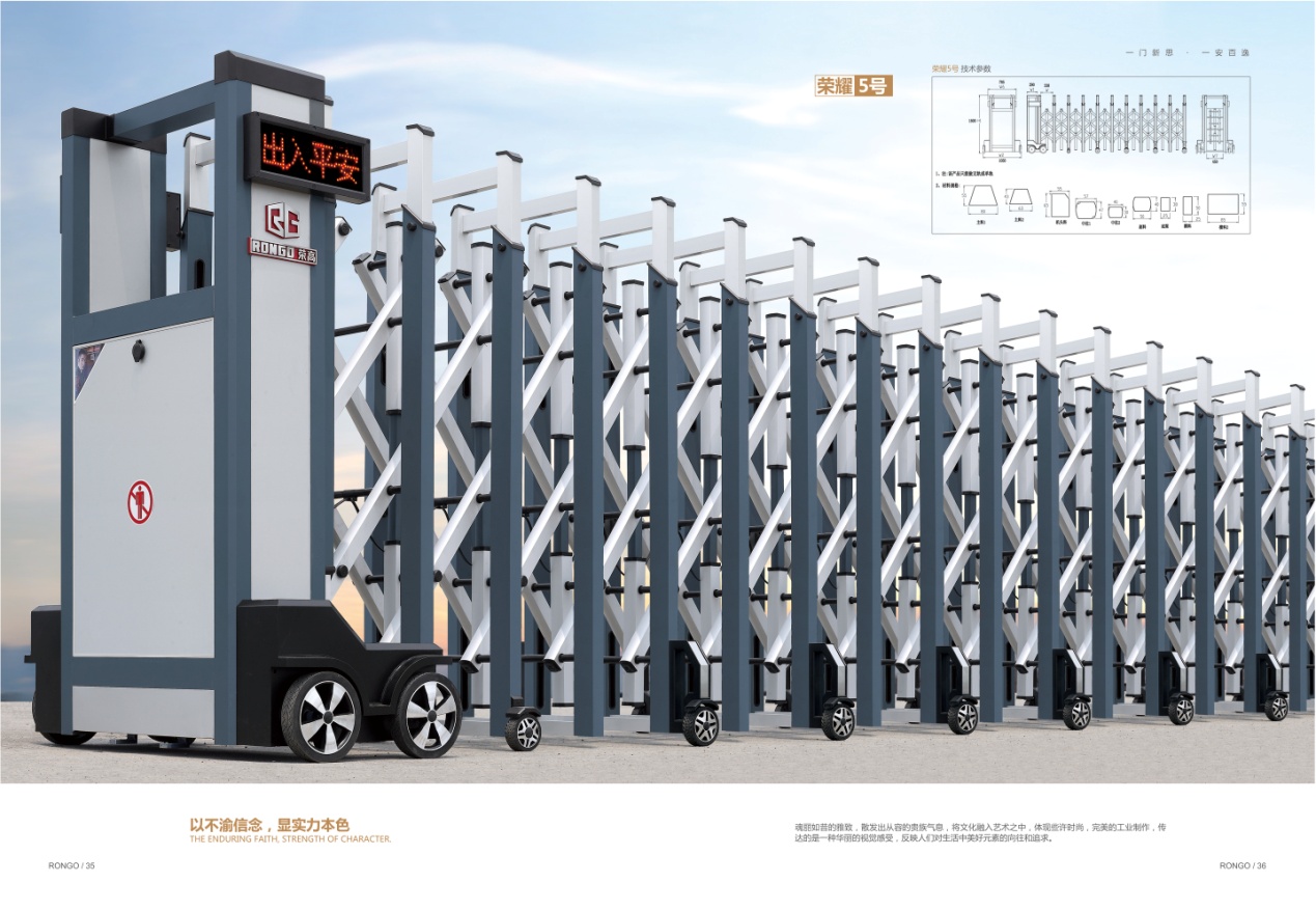 電動伸縮門選取品牌電動伸縮門不用愁電動伸縮門的售后問題和煩擾。電動伸縮門選榮高門窗品牌設(shè)計多元化,榮高品牌是根據(jù)需求對產(chǎn)品進行設(shè)計生產(chǎn)。