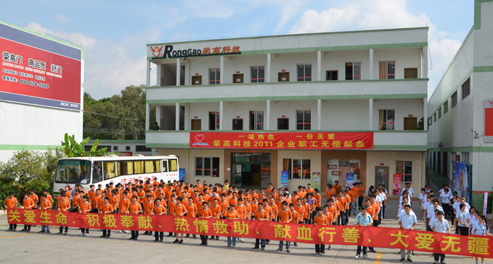 2011年8月18號(hào),由榮高科技慈善基金會(huì)、佛山市榮高智能科技有限公司、高高門業(yè)科技有限公司聯(lián)合組織企業(yè)職工志愿者進(jìn)行無償獻(xiàn)血。無償獻(xiàn)血活動(dòng)由佛山市南海區(qū)中心血站派遣流動(dòng)采血車到公司進(jìn)行血液采集,整個(gè)志愿者無償獻(xiàn)血活動(dòng)從早上9點(diǎn)一直進(jìn)行到中午12點(diǎn)。