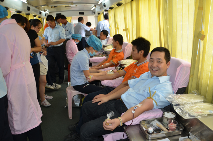員工們的熱情無比高漲,參與獻(xiàn)血的員工是一批接一批,現(xiàn)場的工作人員忙的不亦樂乎